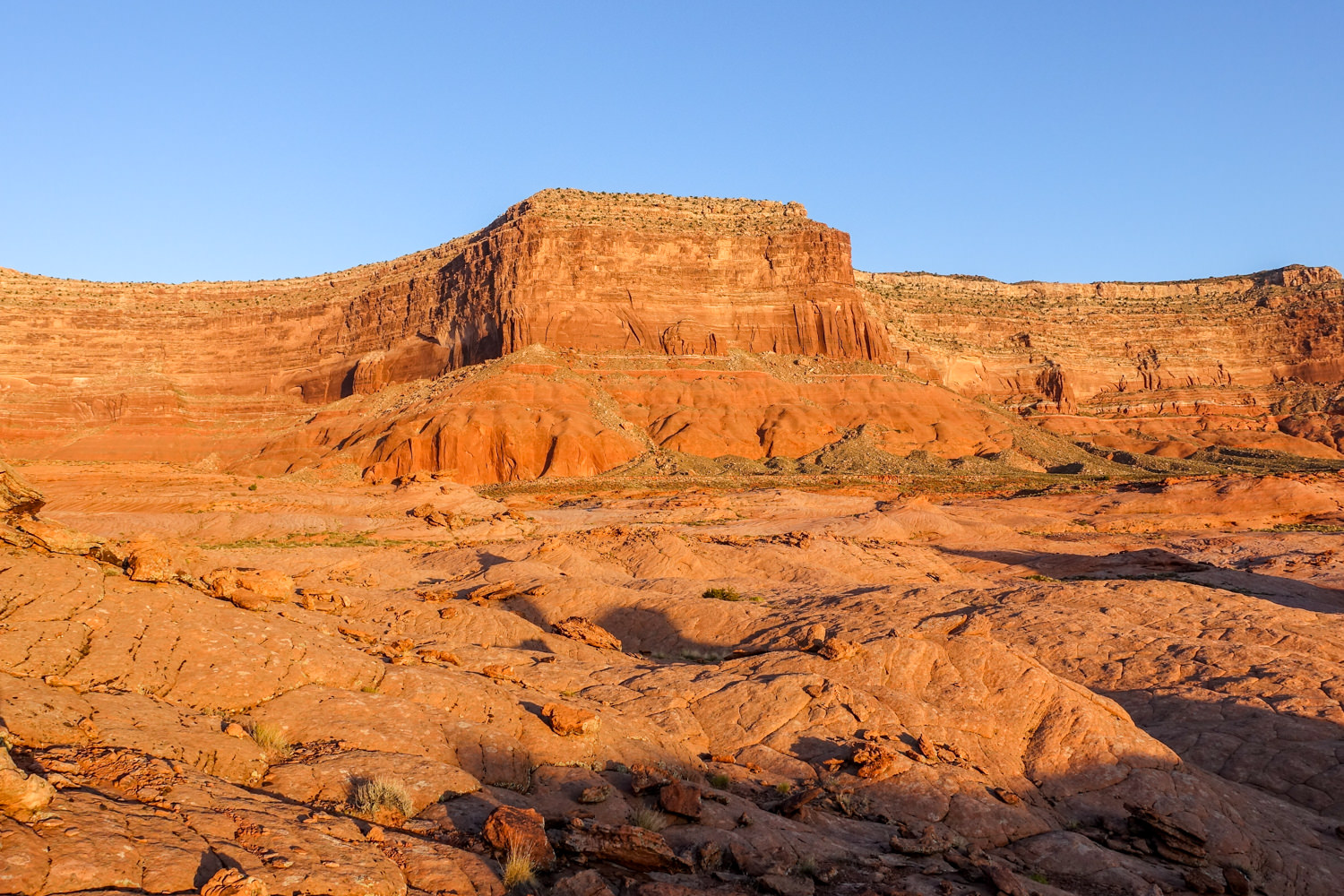 With no designated campsites, you’re free to camp wherever you like. There’s a good spot to camp on the rock shelf near the overlook to Reflection Canyon. Setting up a non-freestanding tent will require patience and creativity on this rocky terrain, so we recommend bringing a freestanding tent, or cowboy camping in good conditions (more info in gear section below).