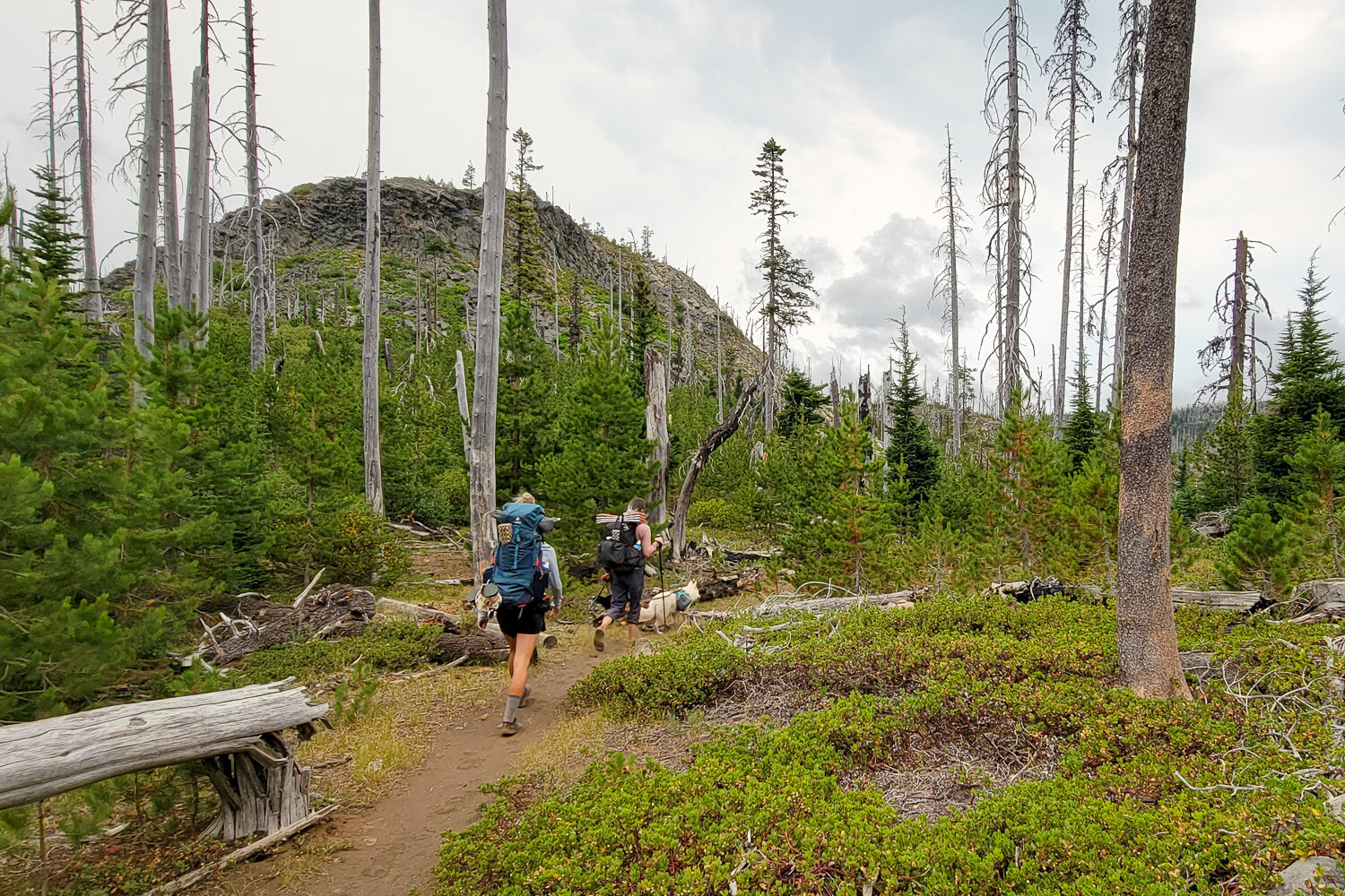 Over half of the route coincides with the Pacific Crest National Scenic Trail, which tends to be well-graded and maintained. And since it’s less than 24 miles, this trip is doable in just a couple of days. Most of the trail traverses land ravaged by the B&B Complex Wildfire in 2005.